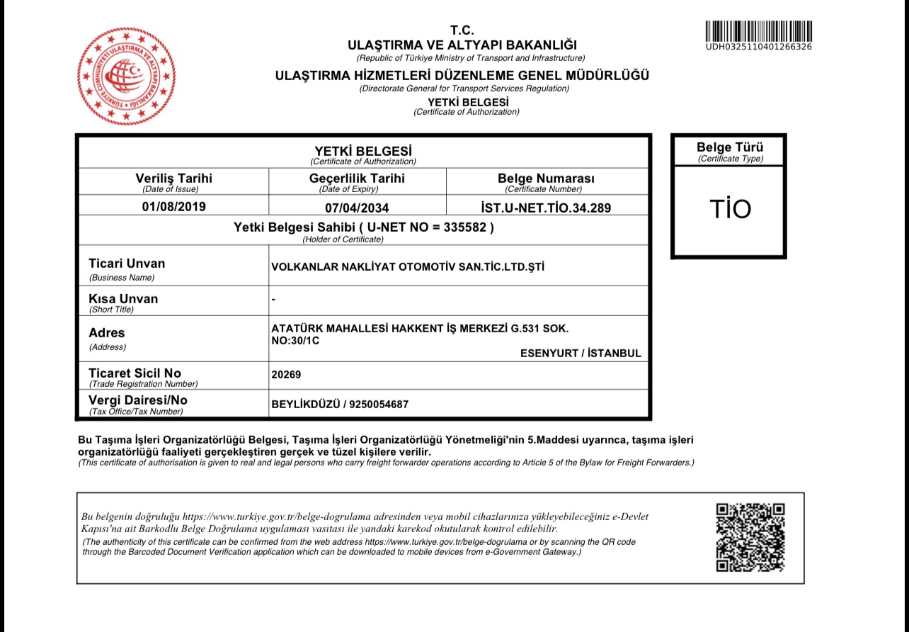 Firmamız Ticari amaçla şehir içi ve yurt içi taşımacığı yapmak da gerekli olan yasal tüm belgelere sahiptir.